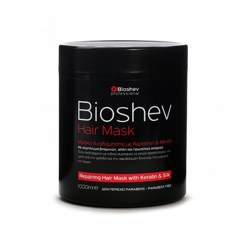 Masca de păr profesională Bioshev este concepută pentru părul uscat și deteriorat de vopsele și alți factori chimici și termici. Este concepută cu ingrediente speciale care protejează părul de rupere, forfecare și deshidratare, oferindu-i vitalitate și strălucire. Conține mătase, keratina, aloe, vitaminele A, E, F și proteine din grâu.